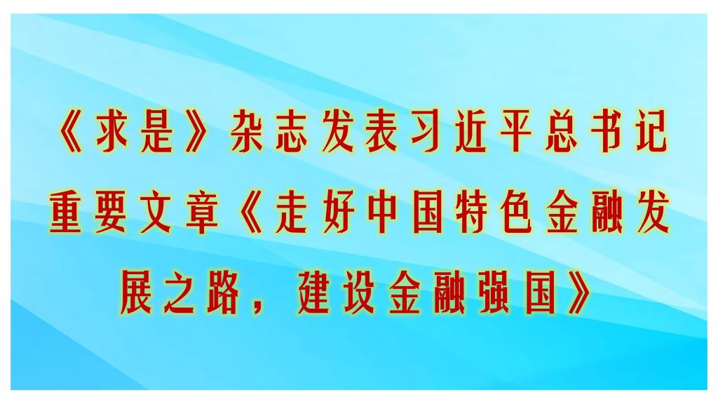 《求是》杂志发表习近平总书记重要文章《走好中国特色金融发展之路,建设金融强国》